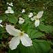Цветок очень крупный (до 8 см), снежно-белый, расположен над листьями, к концу цветения приобретает характерные розоватые оттенки. Края лепестков слегка гофрированы, тычиночные нити — желтые.