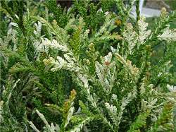 Сорт медленнорастущий, широкой конусовидной формы, в возрасте 10 лет достигает 0,8 м в высоту. Побеги широкие, плоские, зелёные с характерными кремово-белыми фрагментами.