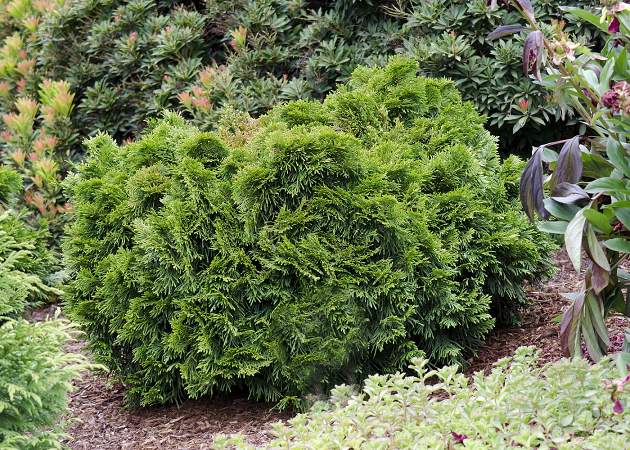 Им прекрасно можно дополнить микбордер и хвойные группы. Хорош рядом со статуями, фонарями, интересен как завершающий элемент низкого бордюра. Может служить украшением в крупных парках и садах возле лавочек и беседок, дополняя розарии и цветники округлыми формами.