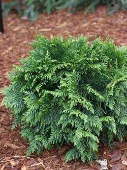 Туя Grune Kugel (Грюне Кугель). Полукарликовая вечнозеленая форма, стремящаяся к шарику, но может и разваливаться в своеобразную подушку. Растет медленно. Густые плотные побеги образуют плотную шаровидную форму кроны. Хвоинки тёмно-зеленые, чешуйчатые. Выносит любые почвы, отдавая предпочтения легким, влажным и проницаемым. Не выносит затопления и пустынных грунтов.