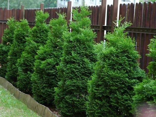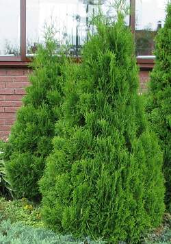 Туя Holmstrup (Холмстрап). Конический медленнорастущий сорт туи, достигающий после 10 лет 3-4 м в высоту. Побеги плотно расположенные, тёмно-зелёные. Нуждается в довольно плодородной и влажной почве. Рекомендуется применять для живых изгородей, аллей, а также одиночных посадок. Место посадки — солнце, полутень.