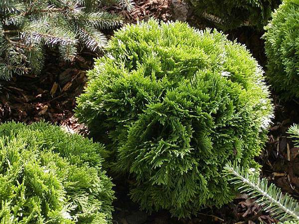 Туя западная Little Gem (Литл Джем). Карликовая форма. Крона шаровидная. Ширина и высота кроны 0,7-2 м. Ветки прямые, приподнимающиеся. Хвоя темно-зеленая, зимой коричневая. Рекомендуется высаживать группами или одиночно на каменистых участках. Ежегодный прирост 0,5 см. Зимостойкость высокая.
