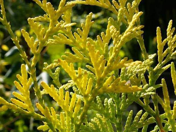 Туя Malonyana Aurea (Малоняна Ауреа). Туя западная Малоняна (Thuya occidentalis Malonyana) — островершинная и узкоколонновидная туя. Максимальная высота 10 — 15м. Побеги короткие, коричневые, густо ветвятся, плоские, расположены плотно. Хвоя блестящая, зеленая, отчетливо железистая.