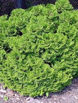 Туя Mekki (Мекки). Хвойное дерево, форма округлая, небольшого размера, растёт до 1м в высоту, и 1 м в диаметре, медленно растущая. Очень высокая устойчивость к заболеваниям.