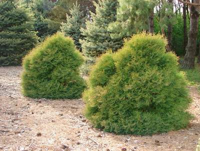 Туя Norm Evers (Норм Эверс). Эту чудесную тую выделяют среди прочих яркая, по-весеннему зеленая хвоя, интересная форма кроны, а также великолепная устойчивость к самым экстремальным морозам. С приходом морозов хвоя окрашивается в коричневый цвет, а весной вновь становится зеленой.
