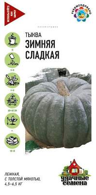 Тыква Зимняя сладкая. Позднеспелый (120-130 дней от всходов до созревания) сорт. Растение плетистое. Плоды плоскоокруглые, сегментированные, массой 7-12 кг. Окраска фона темно-серая с рисунком в виде мелких светло-серых пятен различной интенсивности. Сорт обладает высокой транспортабельностью, лежкостью и устойчивостью к болезням. Выращивается как рассадным способом, так и прямым посевом в грунт. Посев на рассаду — в апреле, высадка в грунт — в мае — июне. Посев непосредственно в грунт в конце мая — июне. Хорошо отзывается на внесение органических удобрений. Схема посадки 60x60 см. Урожайность до 30 кг/м2.