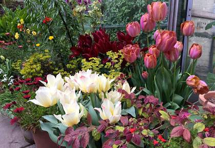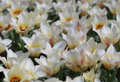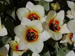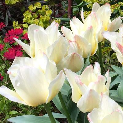 Тюльпан Albion Star (Альбион Стар). Относится к сортам группы ботанических гибридов. При этом также является многоцветковым тюльпаном. Бокалы крупные, бело-розовые, к концу цветения лепестки отгибаются наружу, открывая шикарную желто-оранжевую серединку. Высота около 30 см. Цветение ранее.