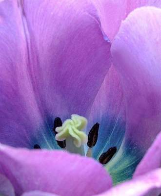 Тюльпан Blue Aimable (Блу Эймабл). Необычная окраска: общий тон сиреневый, основания лепестков голубые; на просвет видно, что края лепестков также светло-голубые. Цветёт в конце мая, довольно продолжительное время и хорошо сохраняет форму бокала. Цветонос стройный, крепкий и высокий, до 65 см — отличная срезка.