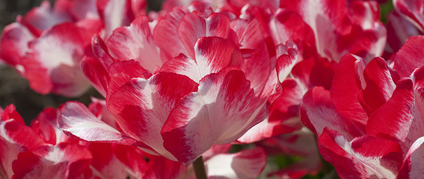 Тюльпан Cartouche (Картуш). Цветок махровый, белый с широкой неравномерной розовой каймой. Высота 50 см.