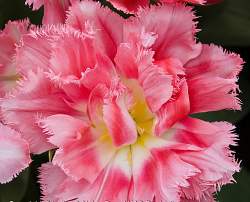 Тюльпан Crispion Sweet (Криспиан Свит). Изумительный махровый цветок с бахромчатыми лепестками. Окраска переливающаяся от темно-розового до белого с желтым подсветом.
