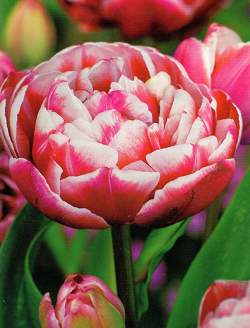 Тюльпан Drumline (Драмлайн). Махровый поздний. Пионовидный. Лепестки красные с белой неравномерной каймой.