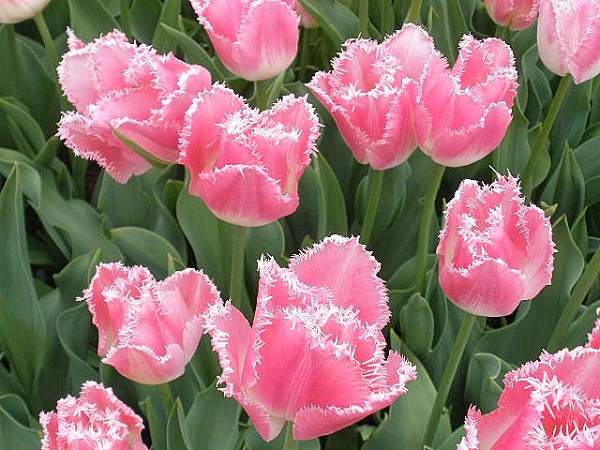 Тюльпан Fancy Frills (Фэнси Фрилз) — цветок бокаловидный, крупный, бело-розовый, с пышной бахромой. Бахромчатые тюльпаны отличаются особой прочностью лепестков, и благодаря этому они особенно устойчивы к неблагоприятным погодным условиям и сильным ветрам. Превосходно держат форму в срезке.
