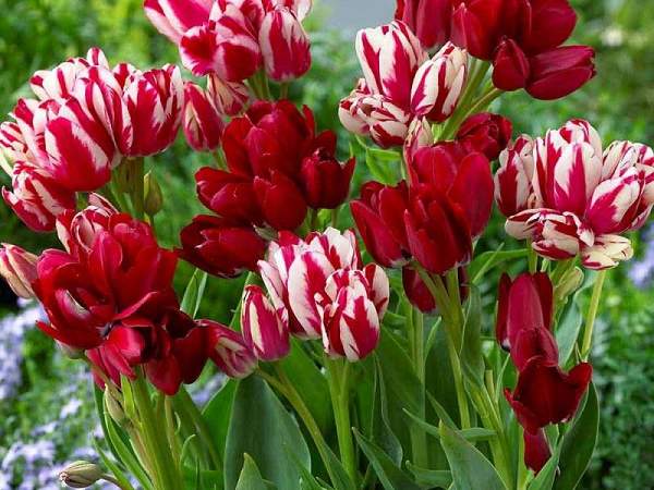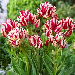 Тюльпан Flaming Club (Флейминг Клаб). Яркий многоцветковый сорт. На каждом стебле целый букет! Окраска красно-белая, неровная, броская и эффектная. Цветение продолжительное.