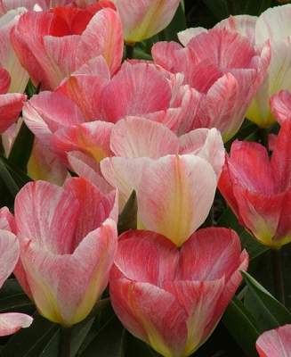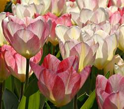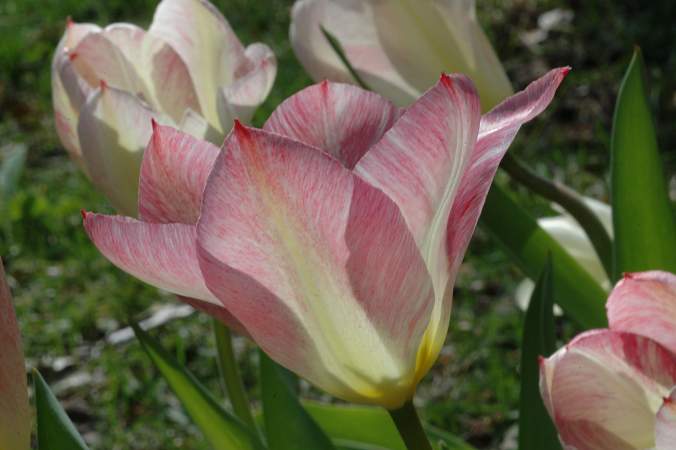 Тюльпан Flaming Purissima (Флейминг Пуриссима). Цветки все разные — бело-желто-розовые, с прожилками, темнее и светлее. В массе выглядят восхитительно!