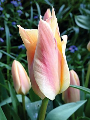 Тюльпан Fur Elise (Фюр Элизе). Прекрасные крупные бокалы на невысоких цветоносах. Редкий цвет — теплый нежно-персиковый, выразительный. Можно не выкапывать два-три года, цветки от этого не мельчают. Как весенний акцент отлично смотрится в каменистых садах, рабатках, клумбах.