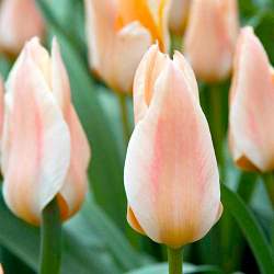 Тюльпан Fur Elise (Фюр Элизе). Прекрасные крупные бокалы на невысоких цветоносах. Редкий цвет — теплый нежно-персиковый, выразительный. Можно не выкапывать два-три года, цветки от этого не мельчают. Как весенний акцент отлично смотрится в каменистых садах, рабатках, клумбах.