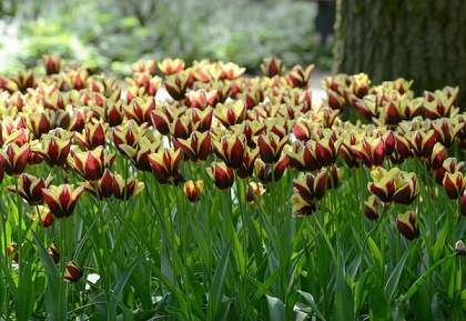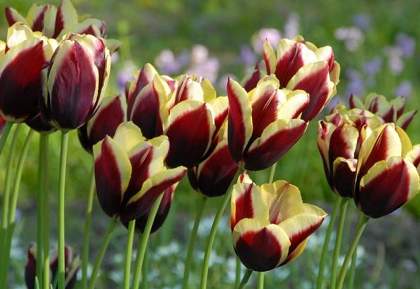 Тюльпан Gavota (Гавота). Триумф. Цветок коричнево-пурпурный с кремовой каймой. Очень эффектный! Высота растения 50 см. Долго цветет и отлично стоит в вазе.