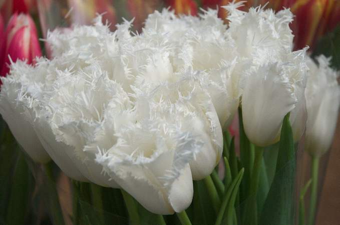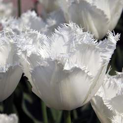 Тюльпан Honeymoon (Ханимун) — цветок бокаловидный, крупный, чисто-белый, с пышной бахромой. Бахромчатые тюльпаны отличаются особой прочностью лепестков, и благодаря этому они особенно устойчивы к неблагоприятным погодным условиям и сильным ветрам. Превосходно держат форму в срезке.