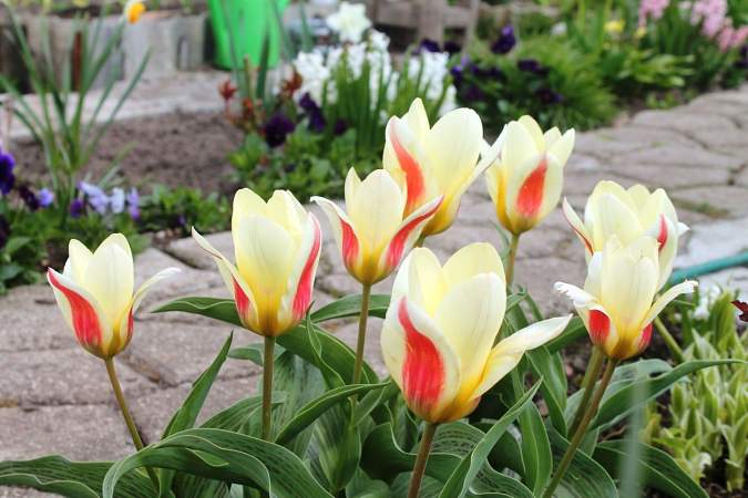 Тюльпан Johann Strauss (Иоганн Штраус). Цветок двухцветный — желтый с оранжевым. Высота растения 30 см. Можно не выкапывать несколько лет.