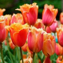 Тюльпан Lambada (Ламбада) — цветок бокаловидный, крупный, желто-оранжевый, с пышной бахромой. Бахромчатые тюльпаны отличаются особой прочностью лепестков, и благодаря этому они особенно устойчивы к неблагоприятным погодным условиям и сильным ветрам. Превосходно держат форму в срезке.