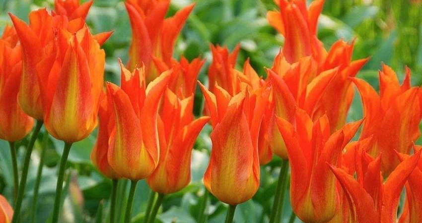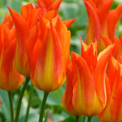 Тюльпан Lilyfire (Лилифайр). Очень эффектный сорт. Лилиецветный, красно-оранжевый, бокалы высокие, изящные.