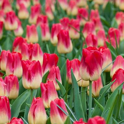 Тюльпан Match (Мэтч). Триумф. Выразительный и элегантный. Цветок бокаловидный, крупный, кремово-желтый снизу и темно-розовый сверху. Высота бокала цветка до 10 см. Высота растения до 50 см. Отличная срезка.