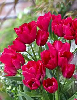 Тюльпан Merry Go Round (Мерри Гоу Раунд). Высокий тюльпан (до 70 см) с ветвящимся стеблем. На одном стебле до 5 цветков. Цвет яркий красновато-малиновый. Цветки достаточно крупные, особенно для многоцветкового тюльпана — до 8 см. Цветет в мае очень продолжительно.