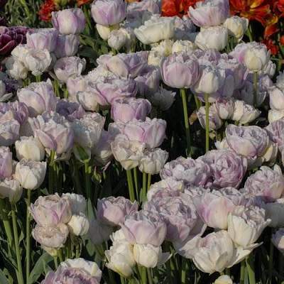 Тюльпан Normandie (Нормандия). Махровый поздний. Пышный и воздушный, как сиреневое облако. Цветет долго. В массиве производит ошеломляющее впечатление. Высота 45 см.