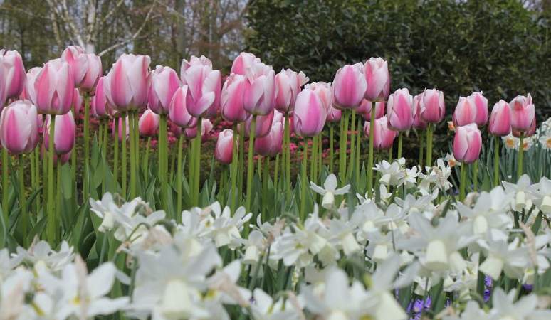 Тюльпан Ollioules (Олиоле). Нежно-розовый с широким белым краем. Высота 40 см. Красивая срезка.
