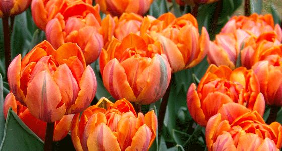 Тюльпан Orange Princess (Оранж Принцесс). Махровый поздний. Бокал красновато-оранжевый с темно-красными всполохами по внешней стороне лепестков. Пионовидный. Один из самых красивых махровых сортов.