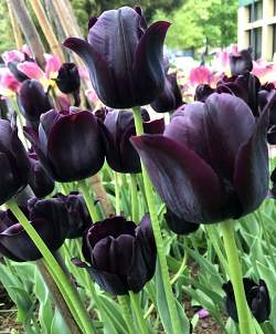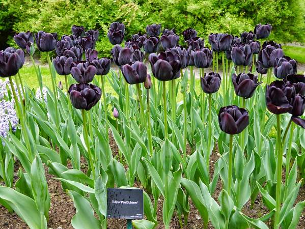 Тюльпан Paul Scherer (Поль Шерер). Бокал черный, в зависимости от освещения отливает то синим, то красным цветом. Высота растения 50 см.