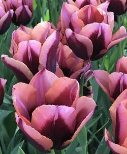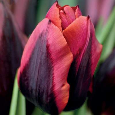 Тюльпан Slawa (Слава). Цветок двухцветный пурпурный и розовато-оранжевый, очень эффектный. Высота растения 60 см.
