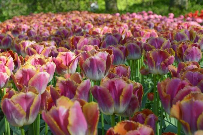 Тюльпан Sunset Miami (Сансет Майами). Бокал многоцветный. Переливы от лавандового до белого. Кайма желтая. Лепестки с изящной бахромой. Очень красивый и необычный сорт.