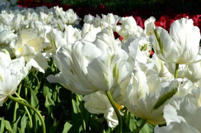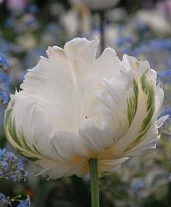 Тюльпан White Parrot (Вайт Пэррот). Белый с зеленоватыми штрихами на внешней стороне лепестка. Высота растения 50 см.