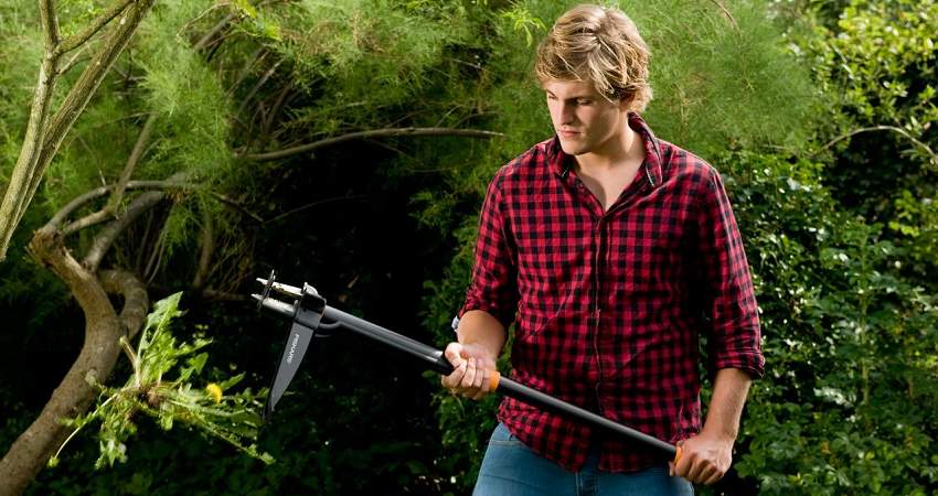 На рукоятке имеется специальный рычаг, который регулирует работу механизма. Стоит отметить, что данное приспособление позволяет надежно извлекать сорняки не нагибаясь, Ваше тело останется в естественном положении, для рук и спины не причиняется дискомфорт. Специальный механизм выталкивания позволяет избавиться от растения сразу после его удаления, значит вам не придется очищать инструмент от сорняков вручную. Эргономичная ручка облегчает процесс извлечения сорняков. Зубья из нержавеющей стали позволяют захватывать растение со всех сторон и эффективно извлекать, не причиняя вреда при этом корням растений.