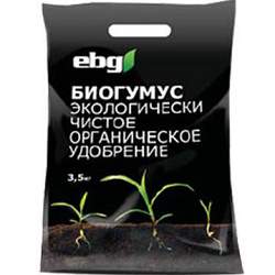 Органическое удобрение, биогумус "EBG", переработка компоста калифорнийскими червями, пакет 3,5 кг, NPK 1,65:1,5:0,75 органика до 33%, гуминовые кислоты 10,3%, фульвокислоты 12,3%, микроэлементы, рН 6,5-8,0 влажность 50-60%.