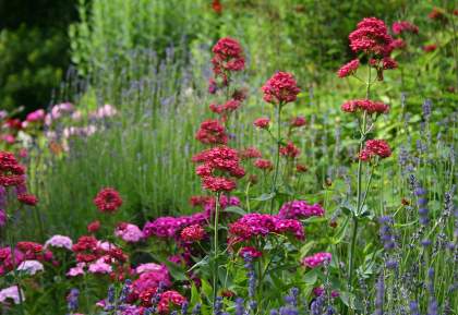 Валериана красная Coccineus (Кокцинеус). Этот интересный многолетник родом из Средиземноморья отличается продолжительным цветением и эффектным внешним видом. Рыхло расположенные облиственные стебли достигают высоты от 60 до 90 см, диаметр куста — до 75 см. Листья супротивные, овальные, зубчатые по краю, сизо-зеленые. Цветки мелкие, темно-красные, собраны в пучки, формирующие плотные головчатые соцветия. Зимостойкость высокая (-29 °С).