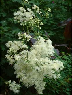 Василистник Album (Альбум). Исключительно красивое многолетнее растение с ажурной листвой и белыми, похожими на облачко, цветками. Высота 60-90 см. Цветение май-июнь.