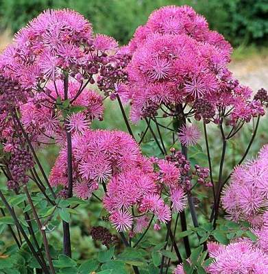 Василистник водосборолистный Purpureum (Пурпуреум). Высота до 90 см. Побеги пурпурные, соцветия пушистые, ярко-сиреневые. Листья похожи на аквилегию. Растение легкое, ажурное. Василистник незаменимым для украшения увлажнённых участков, берегов водоёмов, тенистых садов.