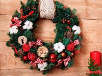Венок изготовлен из натуральной соломы. Это лучшая основа для воплощения всех фантазий. Новый год не за горами. Именно такие венки используют для изготовления традиционных новогодних украшений. С помощью проволоки к основе по спирали привязывают маленькие еловые или пихтовые веточки, а затем декорируют всем, чем только можно: игрушками, конфетами, дольками подсушенных цитрусовых. Получается ароматно, красиво, по-домашнему.