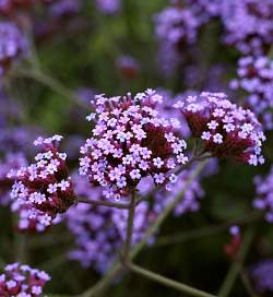 Вербена бонарская (буэнос-айресская). У вербены бонарской прямые четырехгранные упругие стебли, которые не нуждаются в специальных опорах, несмотря на высоту растения. Достигает 150-170 см в высоту. Листья редкие, супротивные, слегка изрезанные по краям, ланцетовидные, плотные и немного морщинистые, до 15 см в длину.