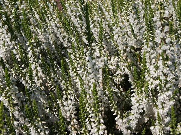 Вереск Alba Erecta (Альба Эректа). Вечнозеленый низкий кустарник. Прямые побеги направлены вверх. Цветки крупные, простые, белые, густо расположены на цветоносах до 15 см длиной. Листья зелёные, чешуйчатые, расположены супротивно.