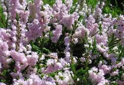 Вереск Radnor (Раднор). Один из самых надёжных и здоровых сортов вереска. Цветки от розовых до фиолетово-розовых, махровые, в коротких густых соцветиях. Цветение обильное, в августе-сентябре. Листва зелёная. Куст плоской формы, компактный, высотой 20-25 см.