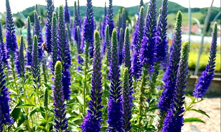 Вероника Anniversary Blue (Аннивёсари Блу). Невысокий компактный сорт (35 см). Кисти густые, длинные, до 30 см. Цветет обильно. Имеет яркий насыщенно-синий цвет.