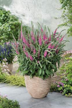 Вероника Anniversary New Rose (Эннивесари Нью Роуз). Невысокое растение (высота до 35 см). Цветки ярко-розовые, собраны в колосовидное соцветие. Кустик плотный, листья седовато-зеленые.