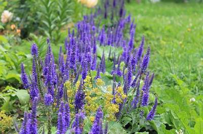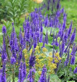 Вероника колосистая Baby Blue (Бэби Блу). Сорт высотой до 25 см. Стебли прямые, листья узкие, зубчатые. Цветки синевато-фиолетовые, собраны в соцветие длиной до 10 см. Цветет с середины июня более около полутора месяцев. Сорт Baby Blue очень хорош для бордюров, каменистых садиков, подпорных стенок.