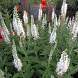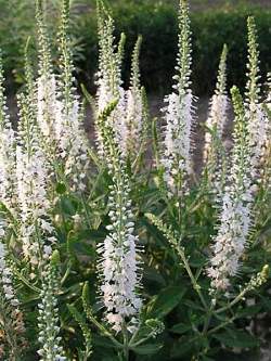 Вероника колосковая Icicle (Айсикл). Многолетнее растение с немногочисленными крепкими прямыми побегами, заканчивающимися плотными колосовидными соцветиями из мелких белых цветков. Листья продолговато-яйцевидные, серовато-зеленые, матовые. Цветение с середины июня, длительное — 35-40 дней. Высота около 60 см.