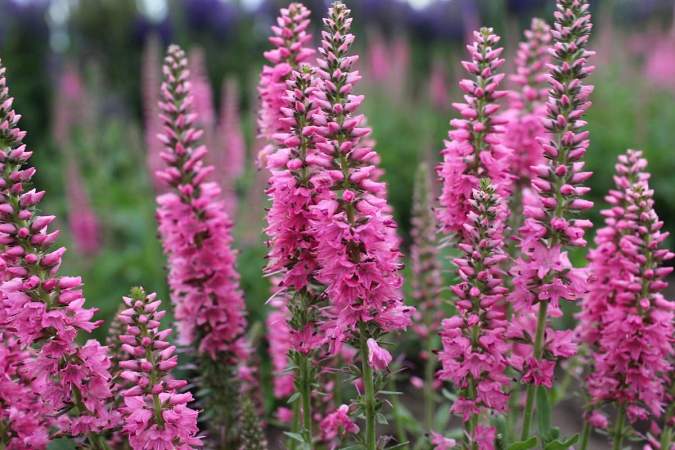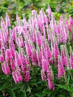 Вероника колосковая Inspire Rose (Инспайр Роуз). Сорт высотой до 45 см. Цветки мелкие, нежно-розовые, собраны в колосовидные соцветия. Листья зелёные, нижние прикорневые — расположены на черешках; верхние (стеблевые) листья — сидячие, длиной до 8 см, ланцетные или узко-обратнояйцевидные.