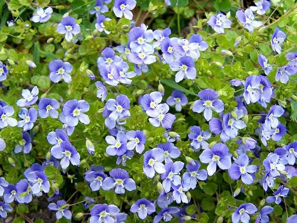Ухода растение не требует. Оно само во всем разберется. Если вероника нитевидная уж слишком расползлась, удалить ее ничего не стоит. Может стелиться по газону, что добавляет очарования зеленым коврам. Цветет одновременно с маргаритками.
