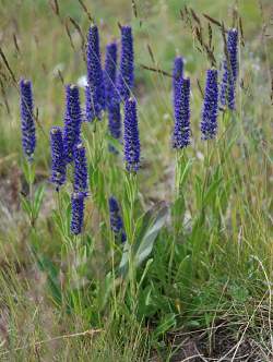 Вероника порфирия. Редкий вид. Многолетнее растение высотой 15–35 см. Стебли и листья зелёные. Цветки почти сидячие, в верхушечных плотных кистях, при отцветании удлиняющихся.Венчик тёмно-синий. Произрастает на лугах, степных и каменистых склонах. Цветёт в конце июня – августе.